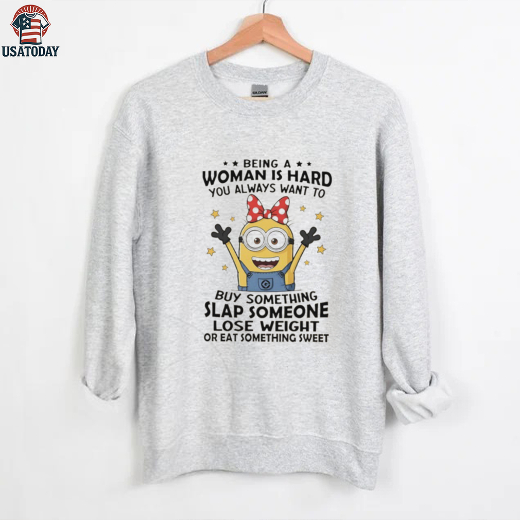 Is being a woman hard? This Minions t-shirt gets it! Hilariously capturing the constant battle between shopping, sweets, and the occasional urge to slap someone, this tee speaks to the everyday struggles of womanhood. It’s the perfect way to add some humor to your wardrobe or to give a knowing nod to the women in your life who just *get it*.